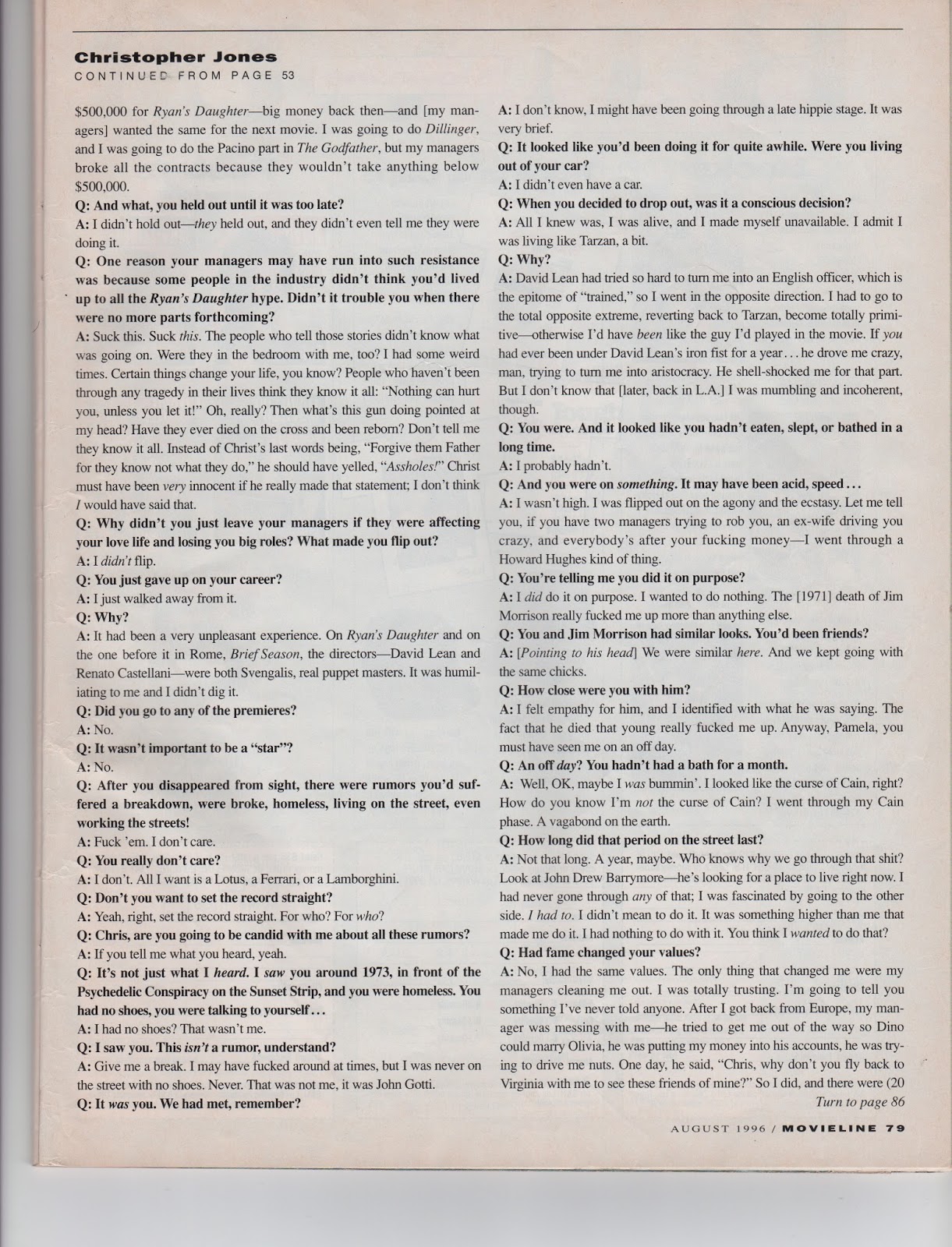 It was a moot point as Jones personally was burned out and turned his back on Hollywood and acting. After suffering his nervous breakdown, he was further devastated by the news of Jim Morrison's death, an Orpheus who expired in his bathtub in Paris.