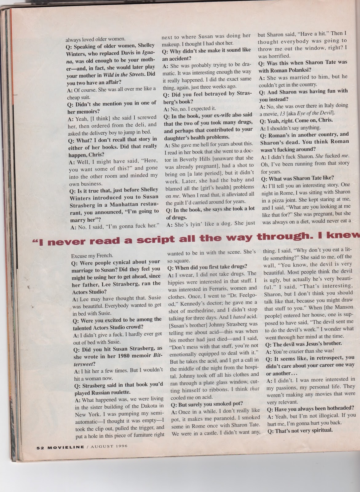 Discussed in four actresses' autobiographies: "Serves Me Right" (1994) by Sarah Miles; "Shelley II: The Middle of My Century" (1989) by Shelley Winters; "Bittersweet" (1980) by Susan Strasberg; and "The Girl on the Balcony" (2018) by Olivia Hussey.